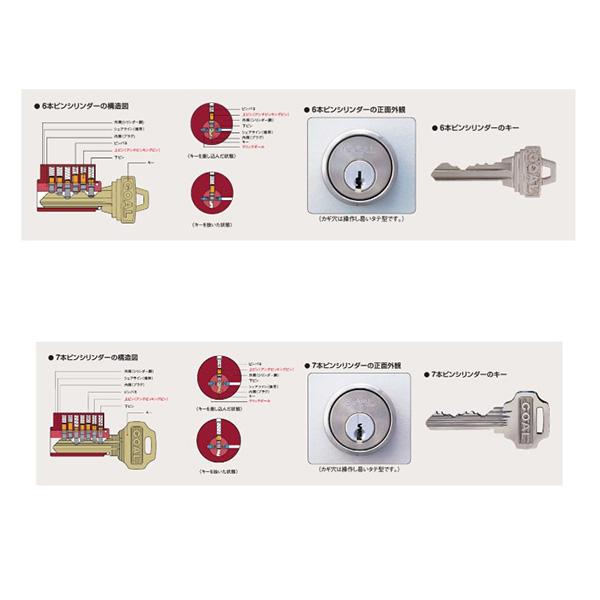 操作性や耐久性に優れたピンシリンダー。2001年より上ピンの全てにアンチピッキングピンを採用し性能も向上。最大鍵違い数は100万通り。